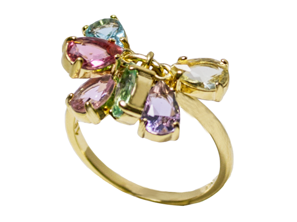 AB 1845 Anel Penca Gotas Coloridas BRUNA Semijoias Com Banho De Ouro 18K Antialérgico e Níquel FREE