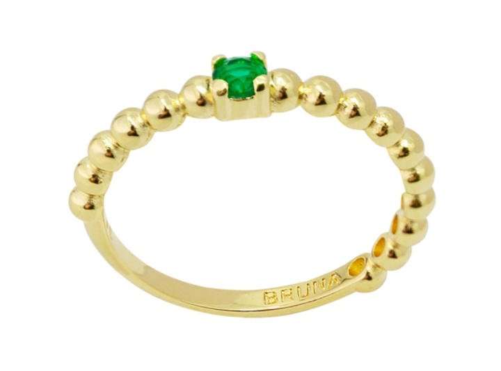 AB 1876 Anel Felicidade Bolinhas e Cristal Verde BRUNA Semijoias Com Banho De Ouro 18K Antialérgico e Niquel FREE.