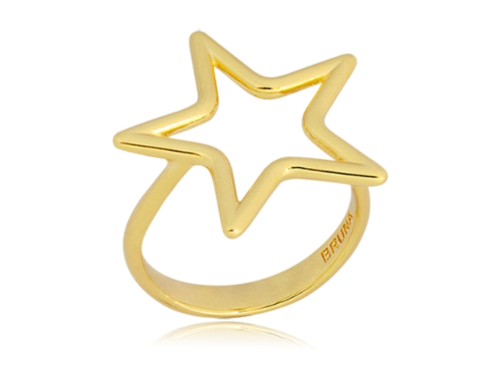 AB 1895 Anel Mãe Estrela Vazada Lisa BRUNA Semijoias Com Banho De Ouro 18k Antialérgico e Níquel FREE.