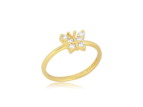 AB 1898 Anel Infantil Borboletinha Cravejada BRUNA Semijoias com Banho de Ouro 18K Antialérgico e Níquel FREE