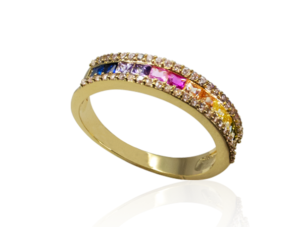 AB 1922 Anel Carrê Aliança Colorida BRUNA Semijoias com Banho de Ouro 18K Antialérgico e Níquel FREE