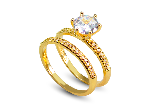 AB 1923 Anel Aparador Cravejado Com Solitário BRUNA Semijoias c/ Banho de Ouro 18K Antialérgico e Níquel FREE