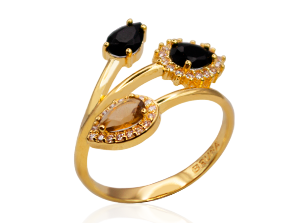 AB 1951 Anel Gotas Preto e Caramelo BRUNA Semijoias com Banho de Ouro 18K Antialérgico e Níquel FREE