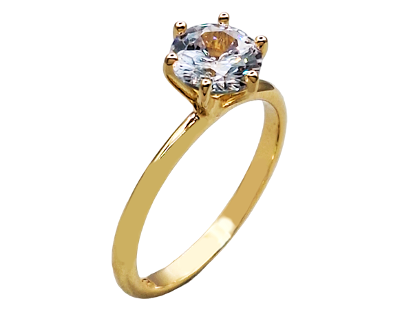 AB 1959 Anel Solitário Cristal Redondo 8mm Com 6 Garras BRUNA Semijoias Com Banho de Ouro 18K Antialergico e Niquel FREE