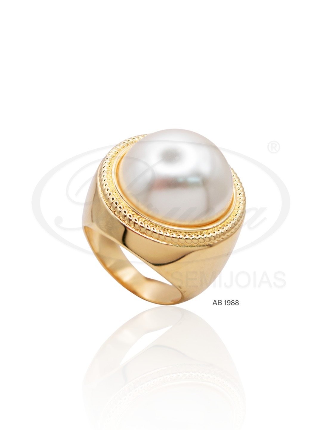 AB 1988 Anel Meia Pérola 1,8CM BRUNA Semijoias Com Banho De Ouro 18k Antialérgico e Níquel FREE.