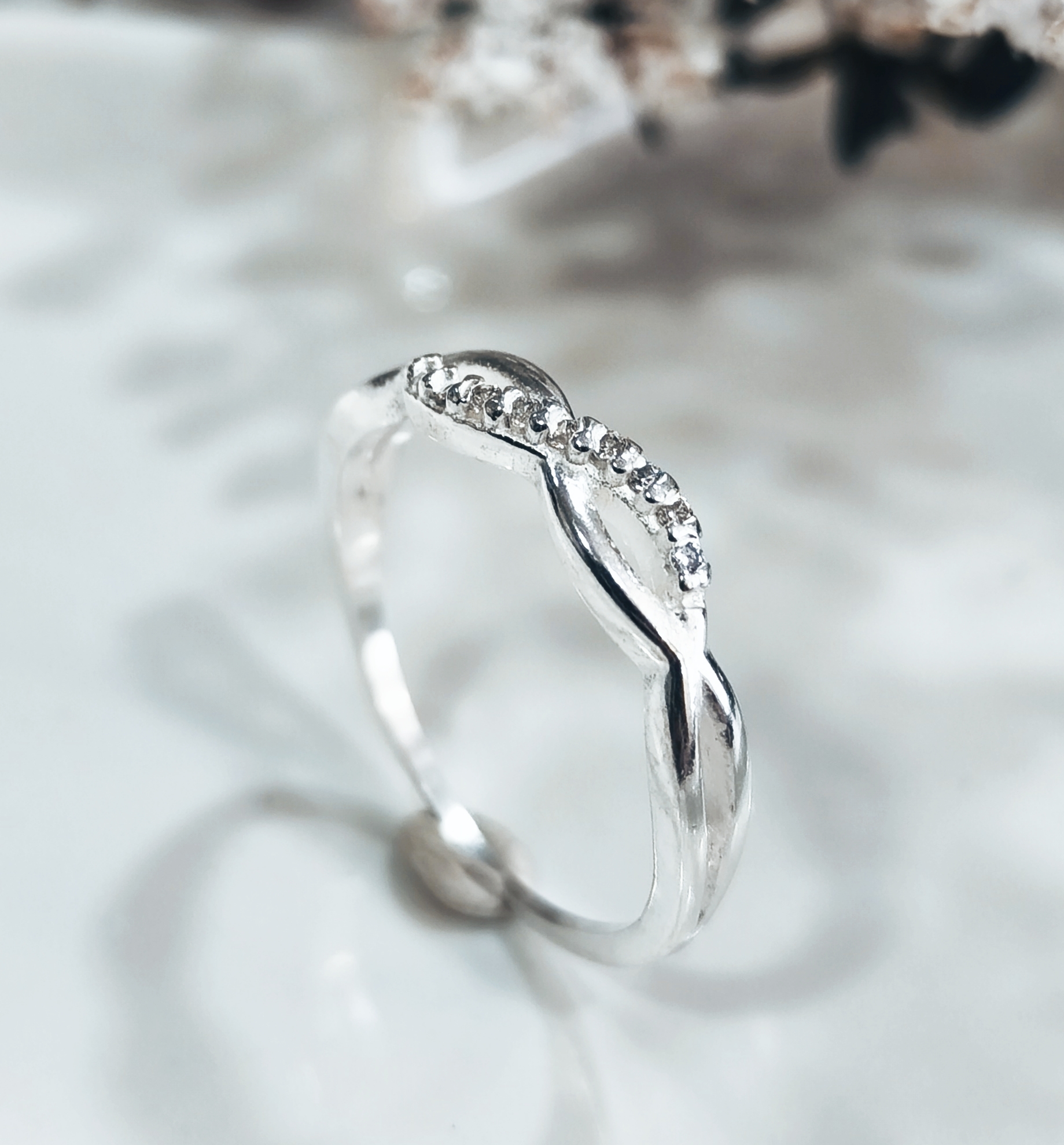 AQP18582 Anel Prata Infinito Cravejado Vazado Qualitá Semijoias