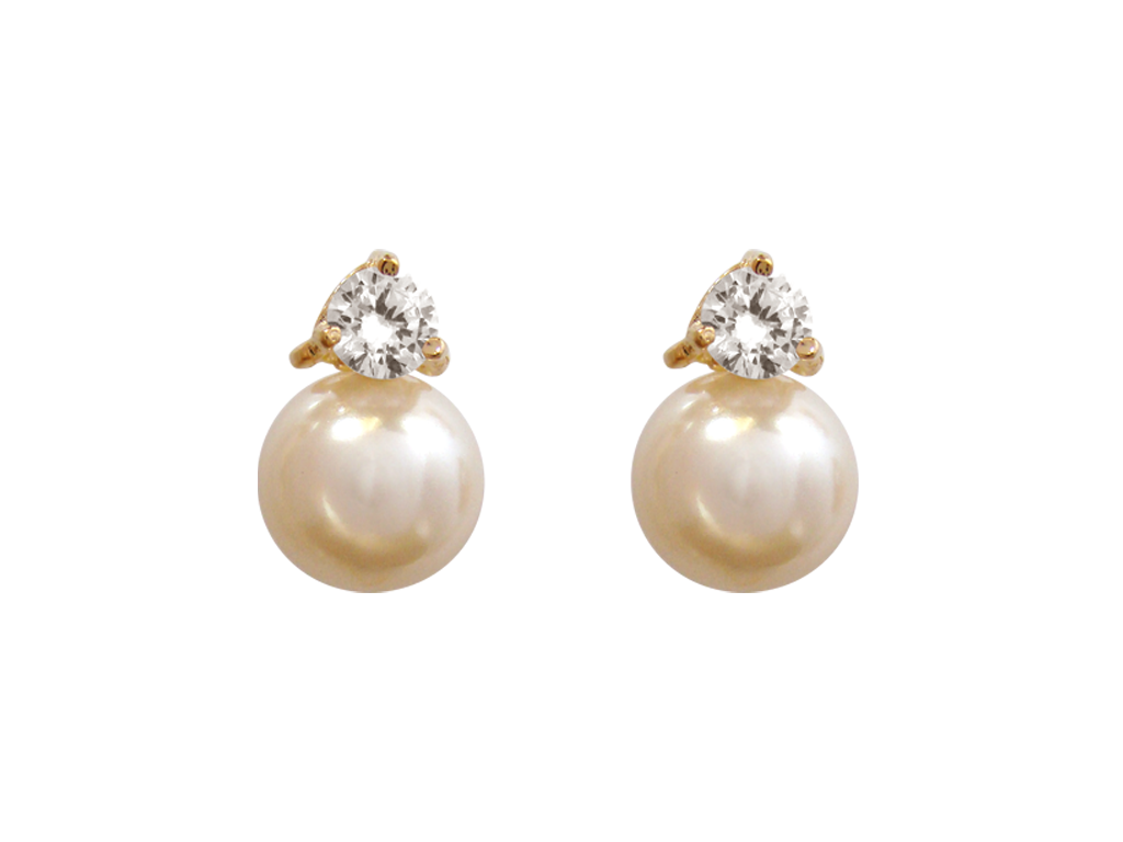 BB 1982 Brinco Solitário de Zirconia 6mm Com Pérola 12mm BRUNA Semijoias C/ Banho de Ouro 18K Antialérgico e Níquel FREE