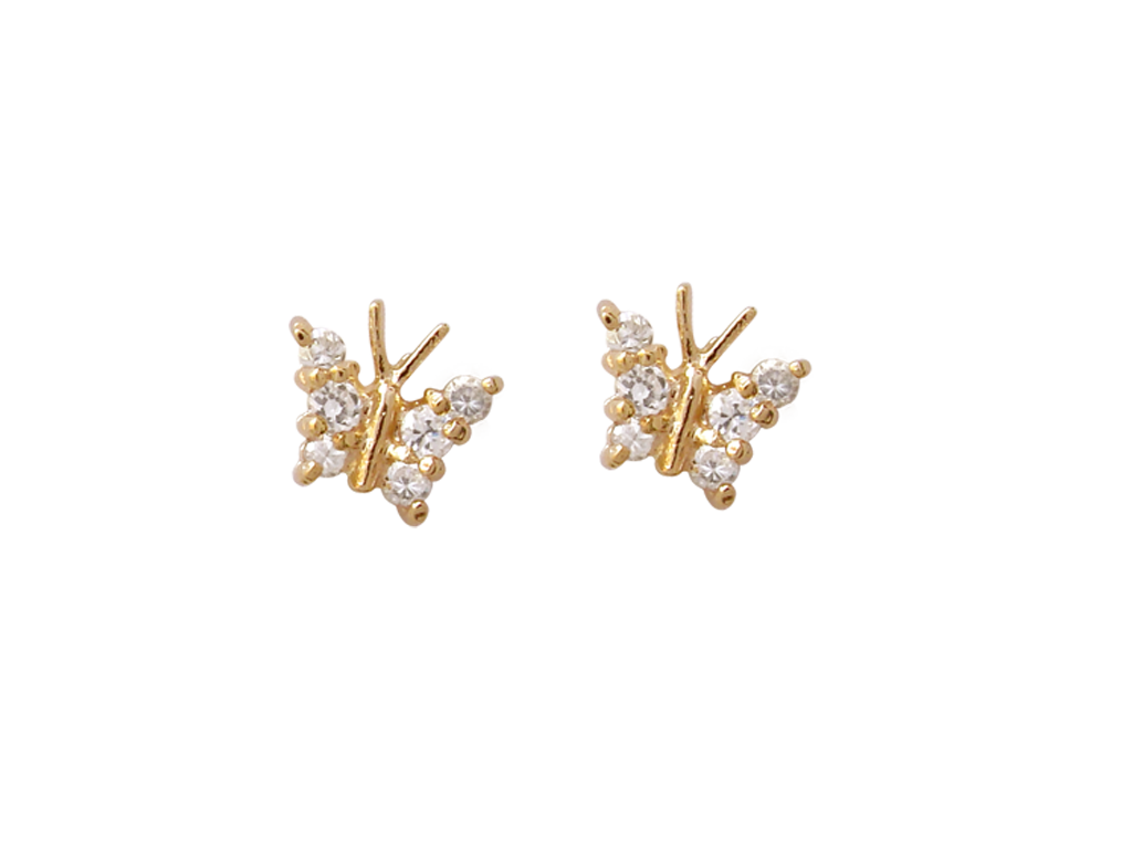 BB 2055 Brinco Borboleta Pequena Com Zirconia BRUNA Semijoias Com Banho De Ouro 18K Antialérgico e Níquel FREE.