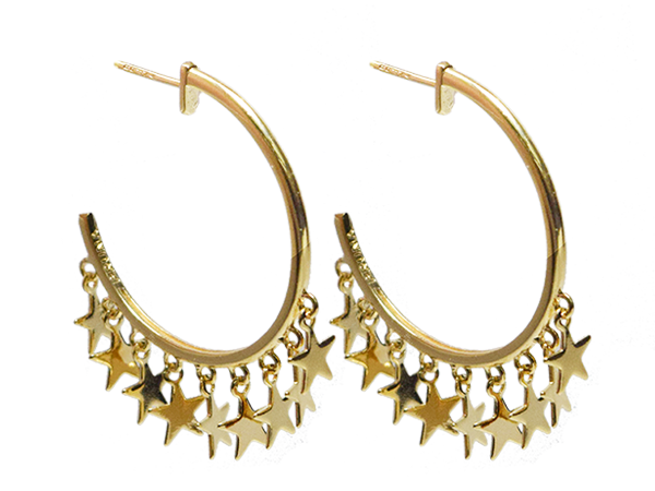 BB 2987 Brinco Meia Argola Fio 3cm c/ Estrelinhas Penduradas BRUNA Semijoias Com Banho de Ouro 18K Antialergico e Niquel FREE