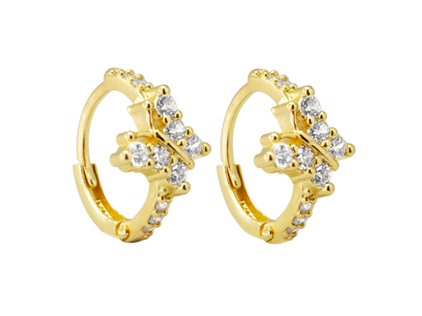 BB 3108 Brinco Argola Infantil 1,2CM Borboleta Cravejada BRUNA Semijoias c/ Banho de Ouro 18K Antialérgico e Níquel FREE