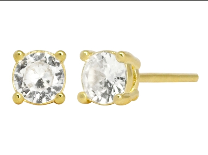BB 3123 Brinco Solitário Zirconia 7mm BRUNA Semijoias Com Banho de Ouro 18K Antialergico e Niquel FREE