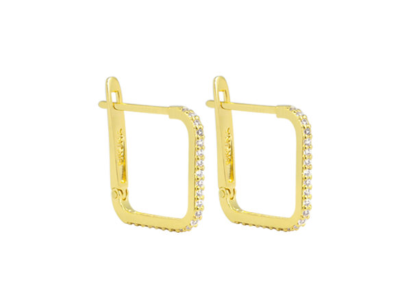 BB 3125 Brinco Argola Quadrada Cravejada Na Frente 12mm BRUNA Semijoias Com Banho De Ouro 18K Antialérgico e Níquel FREE.