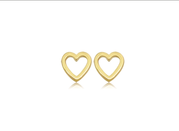 BB 3137 Brinco Mini Coração Vazado Tarraxa Baby BRUNA Semijoias Com Banho de Ouro 18K Antialergico e Niquel FREE