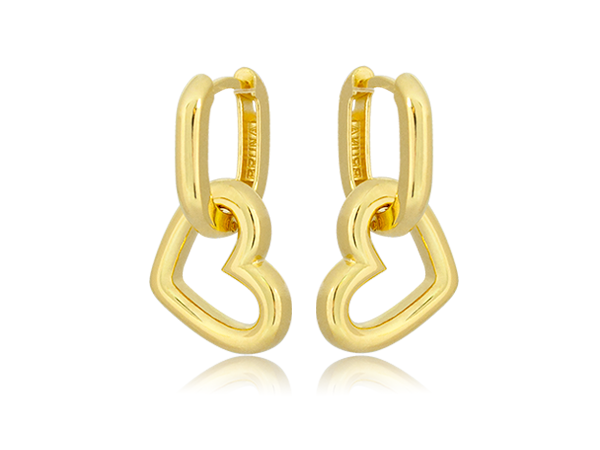 BB 3138 Brinco Polido Elo c/ Coração Pendurado BRUNA Semijoias Com Banho de Ouro 18K Antialergico e Niquel FREE