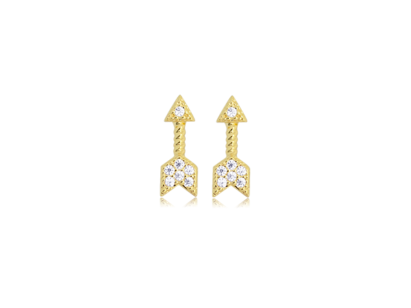BB 3139 Brinco Infantil Flecha Cravejada Baby 1CM BRUNA Semijoias Com Banho De Ouro 18K Antialérgico e Níquel FREE.
