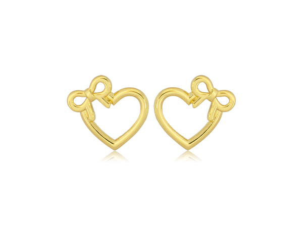 BB 3150 Brinco Coração Com Laço Vazado 1,1CM BRUNA Semijoias Com Banho De Ouro 18K Antialérgico e Níquel FREE.
