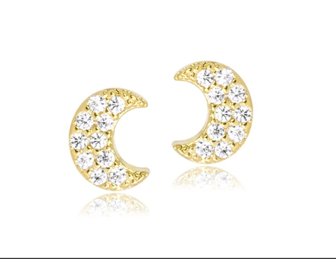 BB 3159 Brinco Lua Cravejada Baby BRUNA Semijoias Com Banho De Ouro 18K Antialérgico e Níquel FREE.