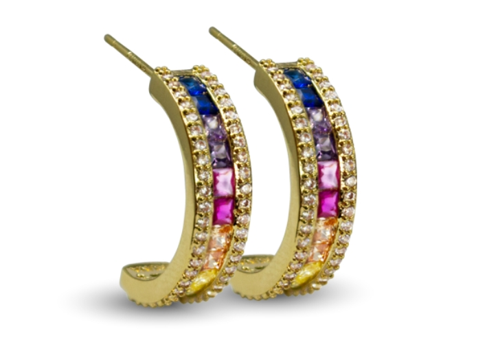 BB 3197 Brinco Meia Argola Carrê Colorida 1,9CM BRUNA Semijoias Com Banho De Ouro 18K Antialérgico e Níquel FREE.