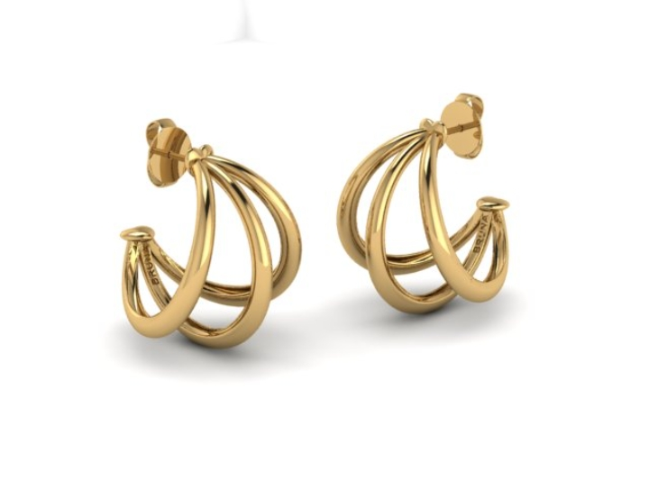 BB 3216 Brinco Meia Argola Três Aros Lisos Tarraxa Grande BRUNA Semijoias Com Banho De Ouro 18K Antialérgico e Níquel FREE.