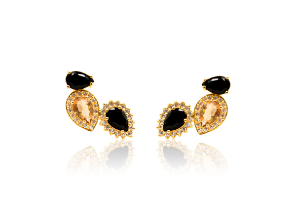 BB 3245 Brinco 3 Gotas Preto/Caramelo 2CM BRUNA Semijoias Com Banho De Ouro 18K Antialérgico e Níquel FREE.