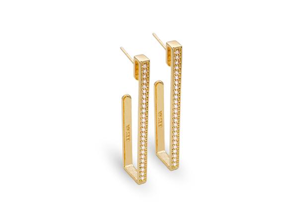 BB 3248 Brinco Meia Argola Retangular Cravejada Zircônias BRUNA Semijoias c/ Banho de Ouro 18K Antialérgico e Níquel FREE