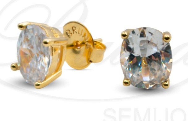 BB 3281 Brinco Solitário Zircônia Oval 1CM BRUNA Semijoias com Banho de OURO 18K Antialérgico e Níquel FREE