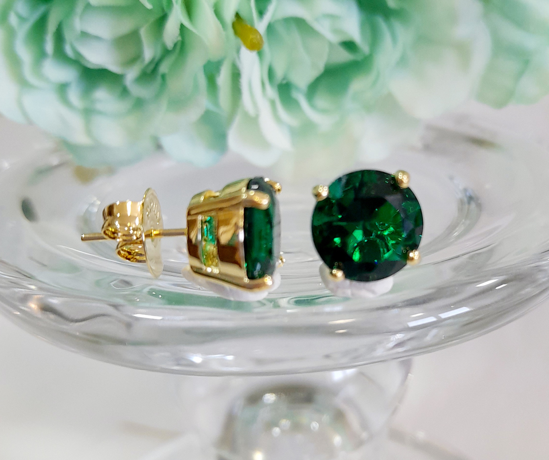 BB 3339 Brinco Isis Pedra Verde Redonda 1CM BRUNA Semijóias Com Banho de Ouro 18K Antialérgio e Níquel FREE
