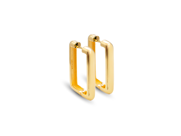 BB 3352 Brinco Argola Retangular Lisa A=1,9cm L=1,4cm BRUNA Semijoias Com Banho De Ouro 18k Antialérgico e Níquel FREE.