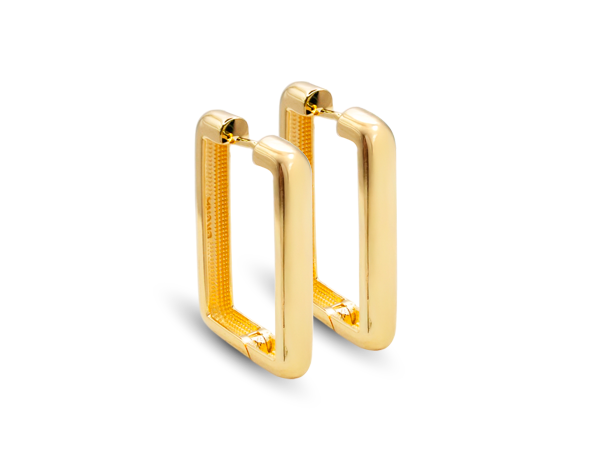 BB 3353 Brinco Argola Retangular Lisa A=3CM BRUNA Semijoias Com Banho De Ouro 18k Antialérgico e Níquel FREE.