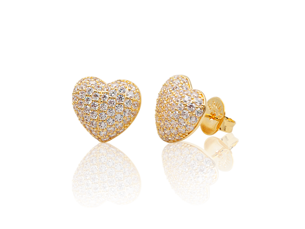 BB 3373 Brinco Coração Cravejado 1,4cm BRUNA Semijoias Com Banho De Ouro 18k Antialérgico e Níquel FREE.