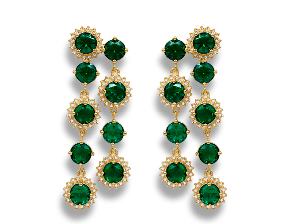 BB 3389 Brinco 2 Fileiras Zirconia Verde Cravejado na Volta BRUNA Semijoias Com Banho de Ouro 18k Antialérgico e Níquel FREE.