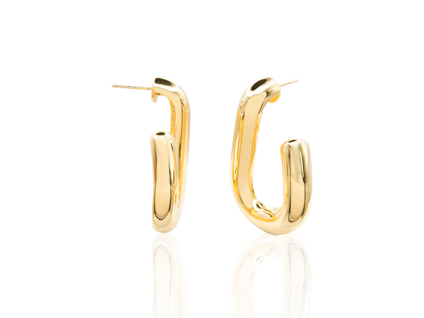 BB 3407 Brinco "J" Abaulado Polido (4cm) BRUNA Semijóias c/ Banho de Ouro 18k Antialérgico e Níquel FREE