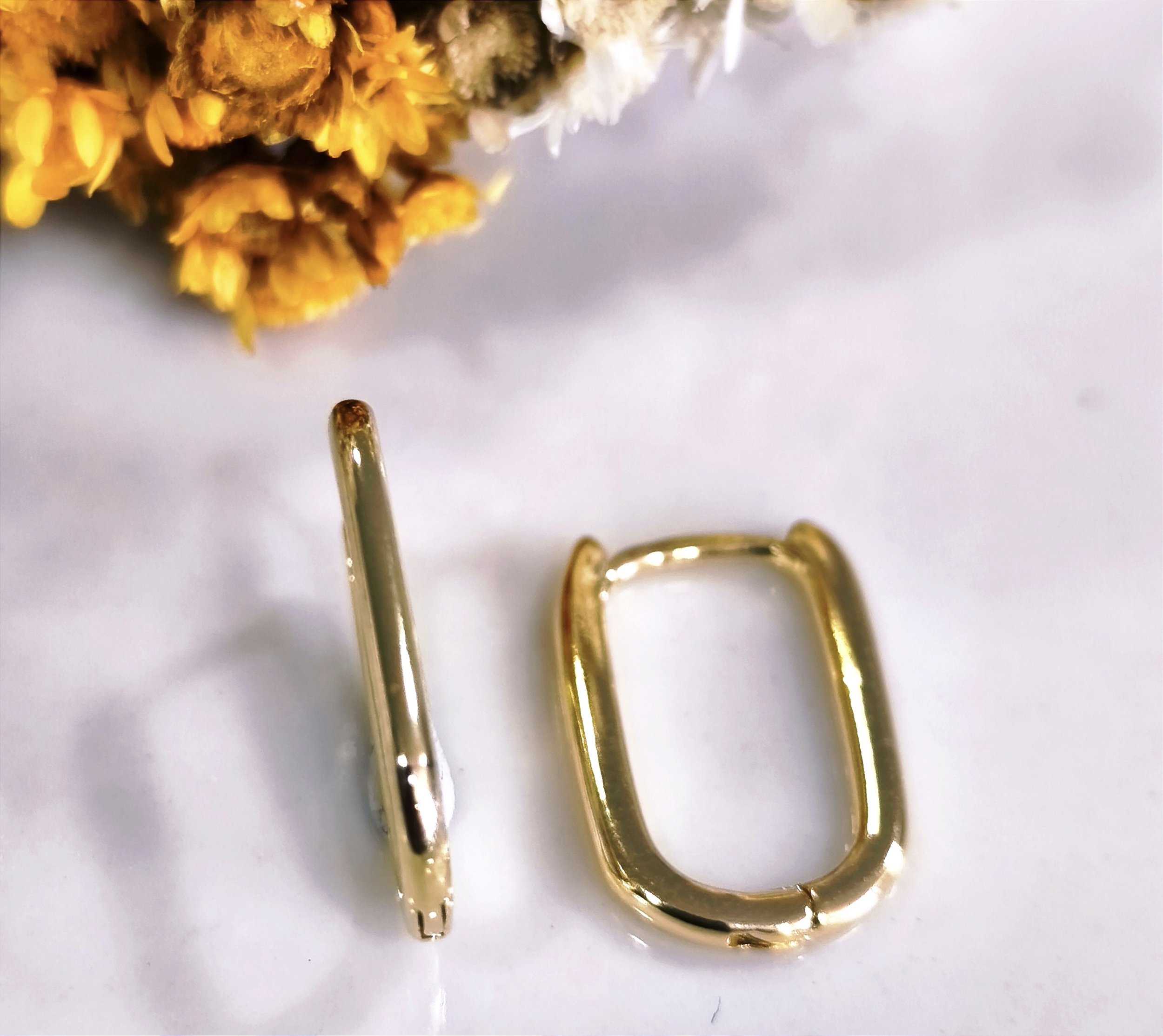 BB 3408 Brinco Argola Polida Oval(2cm) BRUNA Semijóias c/ Banho de Ouro 18K Antialérgico e Níquel FREE