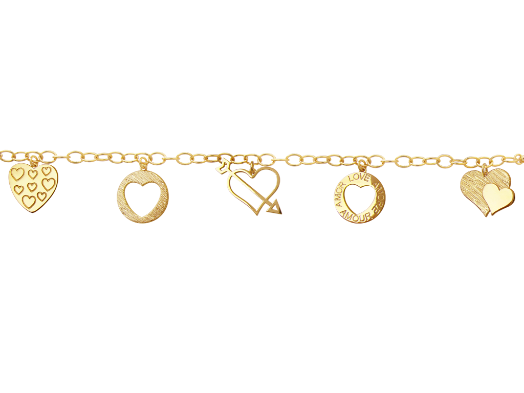 BP 0330 Pulseira Berloque Corações 18CM P/ 20CM BRUNA Semijoias com Banho de Ouro 18K Antialérgico e Níquel FREE