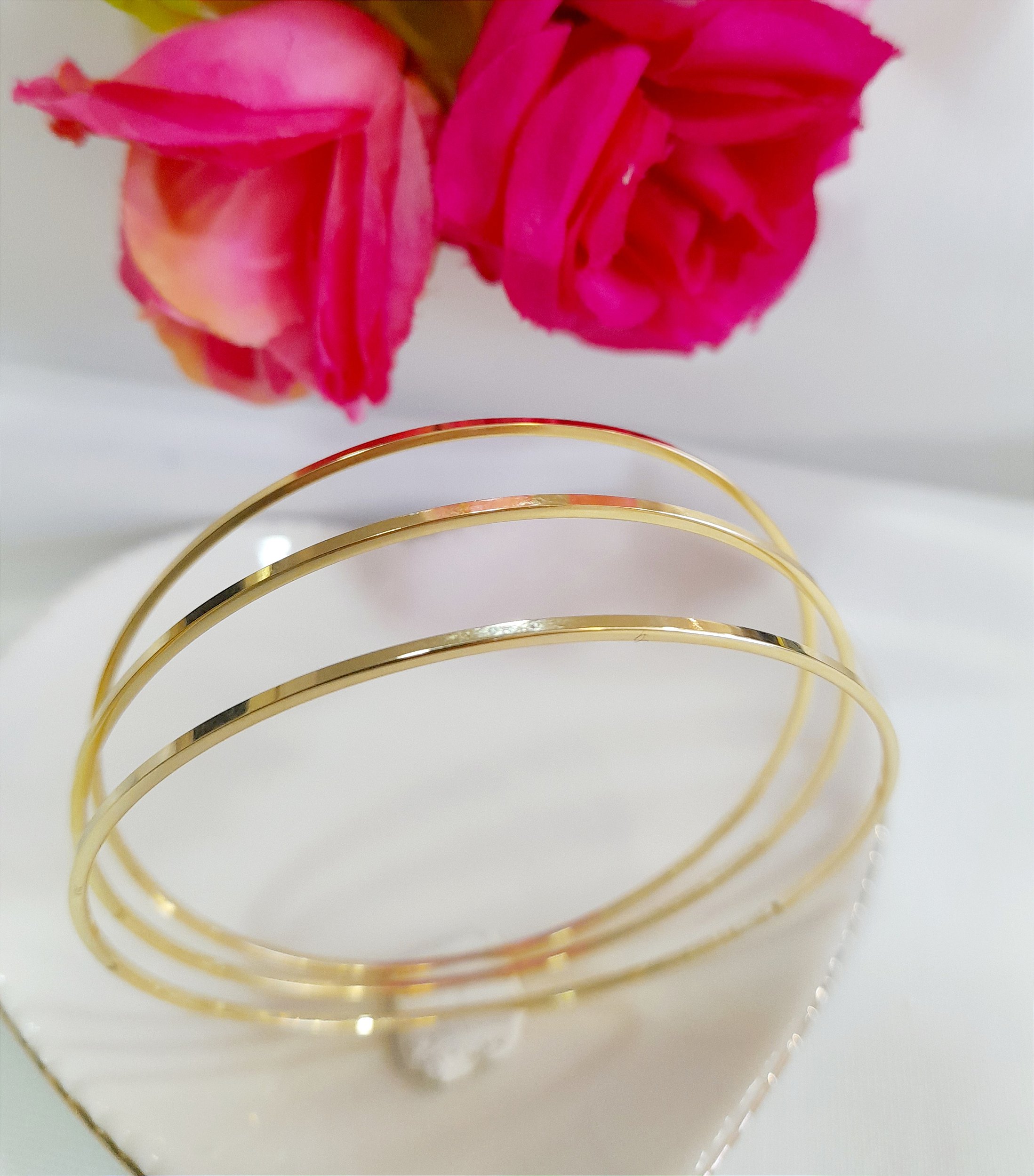 BP 0532 Bracelete Kit 3 Aros (Argolas Finas) c/ 7CM BRUNA Semijóias c/ Banho de Ouro 18K Antialérgico e Níquel FREE