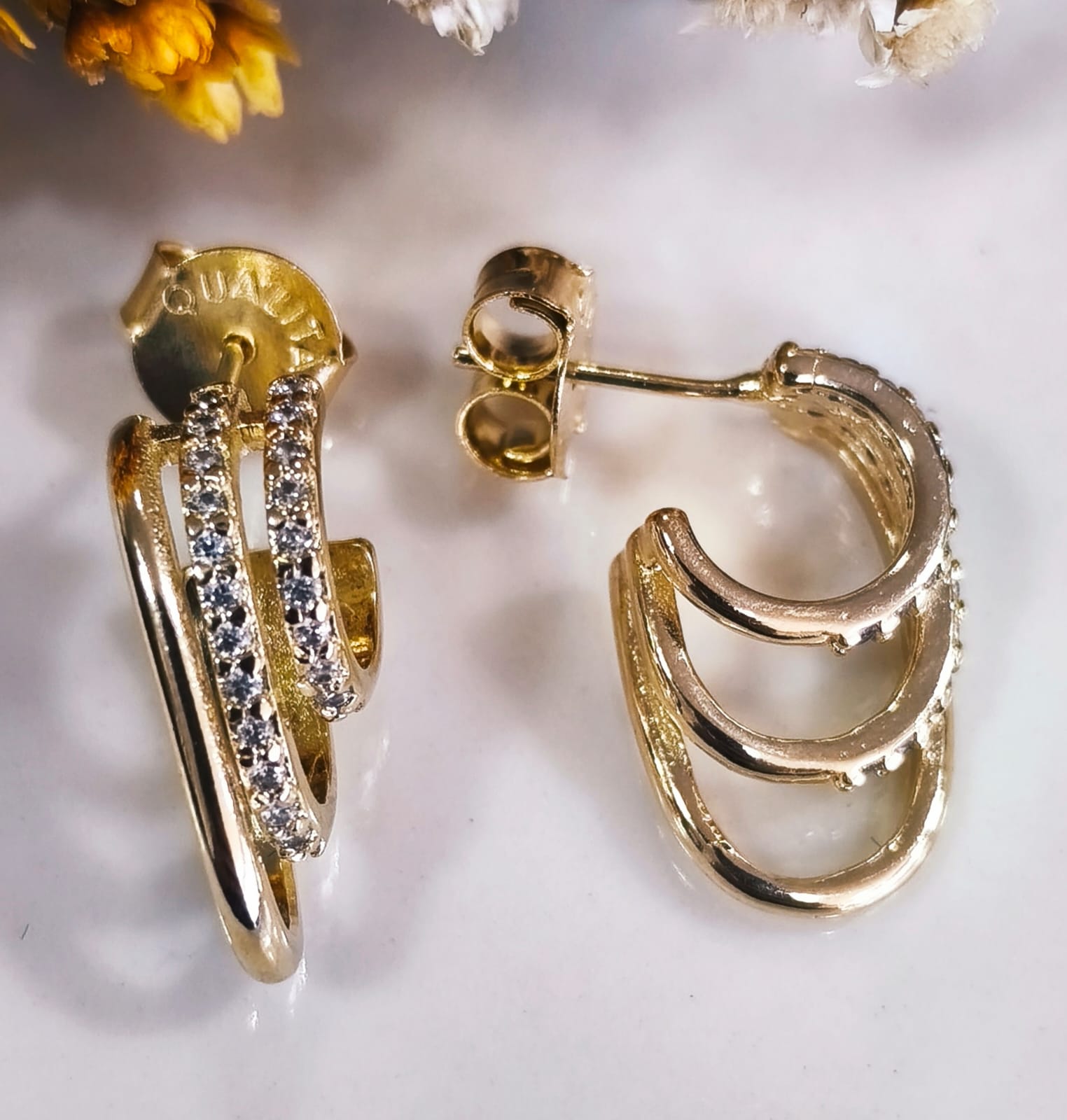 BQ 2339 Curvado Com Zirconias 3 Fios QUALITÁ Semijoias Com Banho De Ouro 18k
