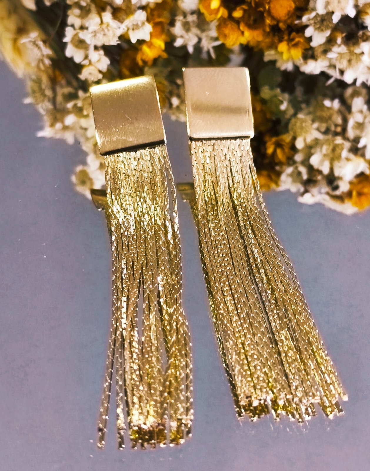 BQ 2415 Brinco Base Quadrada Lisa Com Franja 7CM QUALITÁ Semijoias Com Banho De Ouro 18k