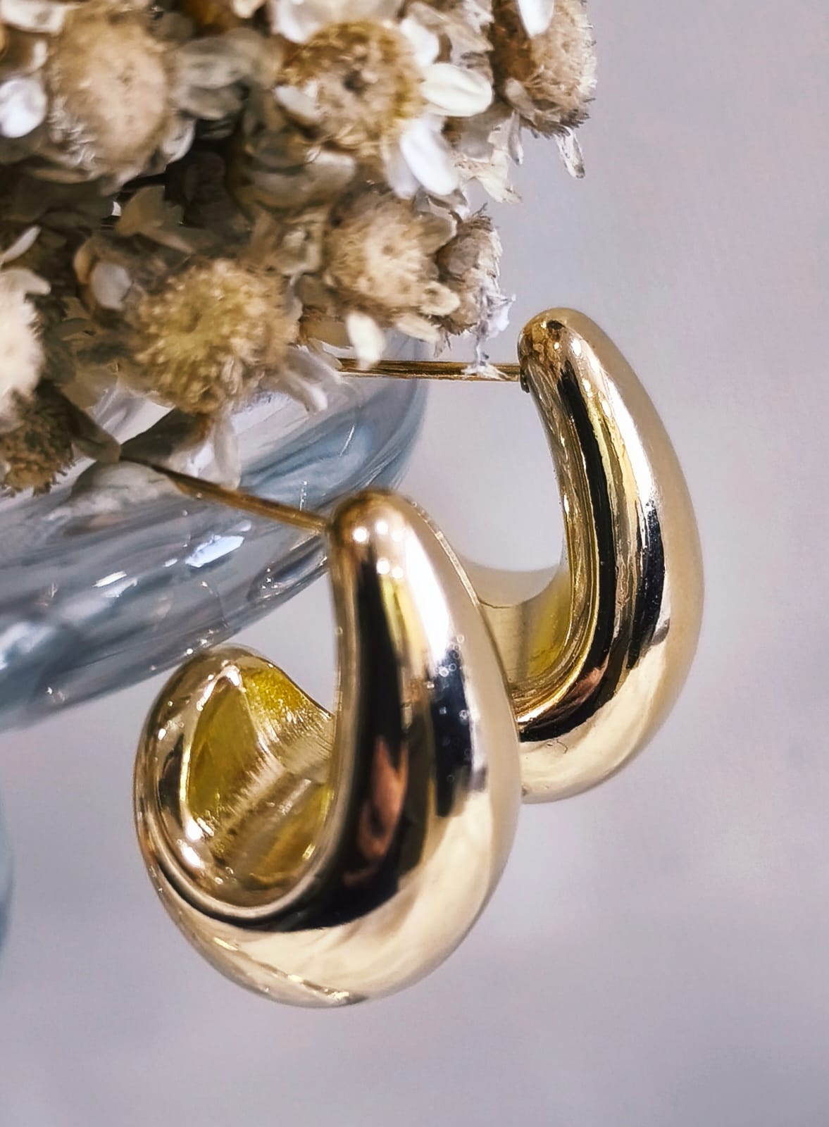 BQ 2650 Brinco Gota Curvada Lisa 2,2cm QUALITÁ Semijoias Com Banho De Ouro 18k