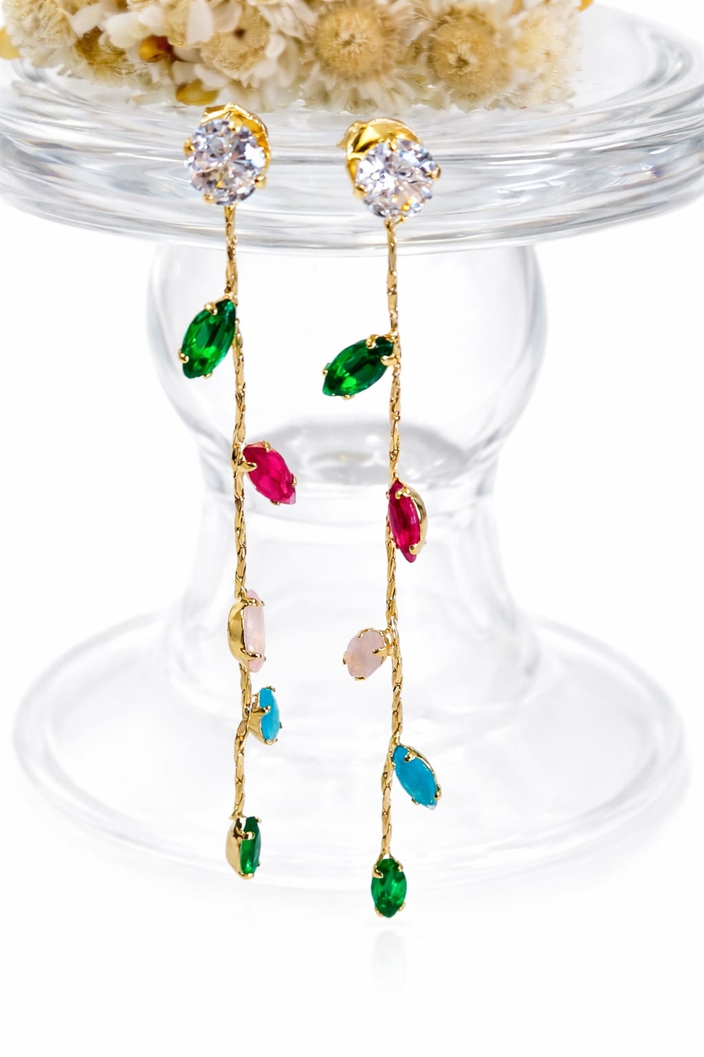 BQC2740 Brinco Correntinha Com Ponto De Luz + Pedrinhas Coloridas QUALITÁ Semijoias Com Banho De Ouro 18k
