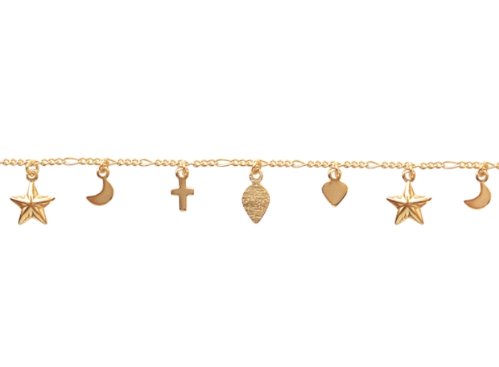BT 0002 Tornozeleira Mista Pendurada 25CM BRUNA Semijoias Com Banho De Ouro 18K Antialérgico e Níquel FREE.
