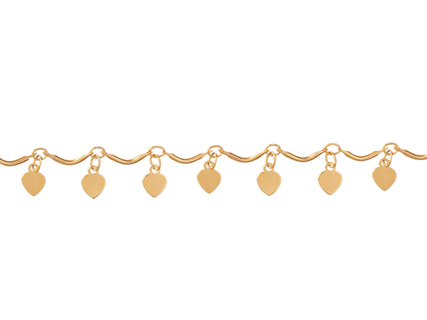 BT 0004 Tornozeleira 25CM Corações Pendurado BRUNA Semijoias Com Banho De Ouro 18K Antialérgico e Níquel FREE.