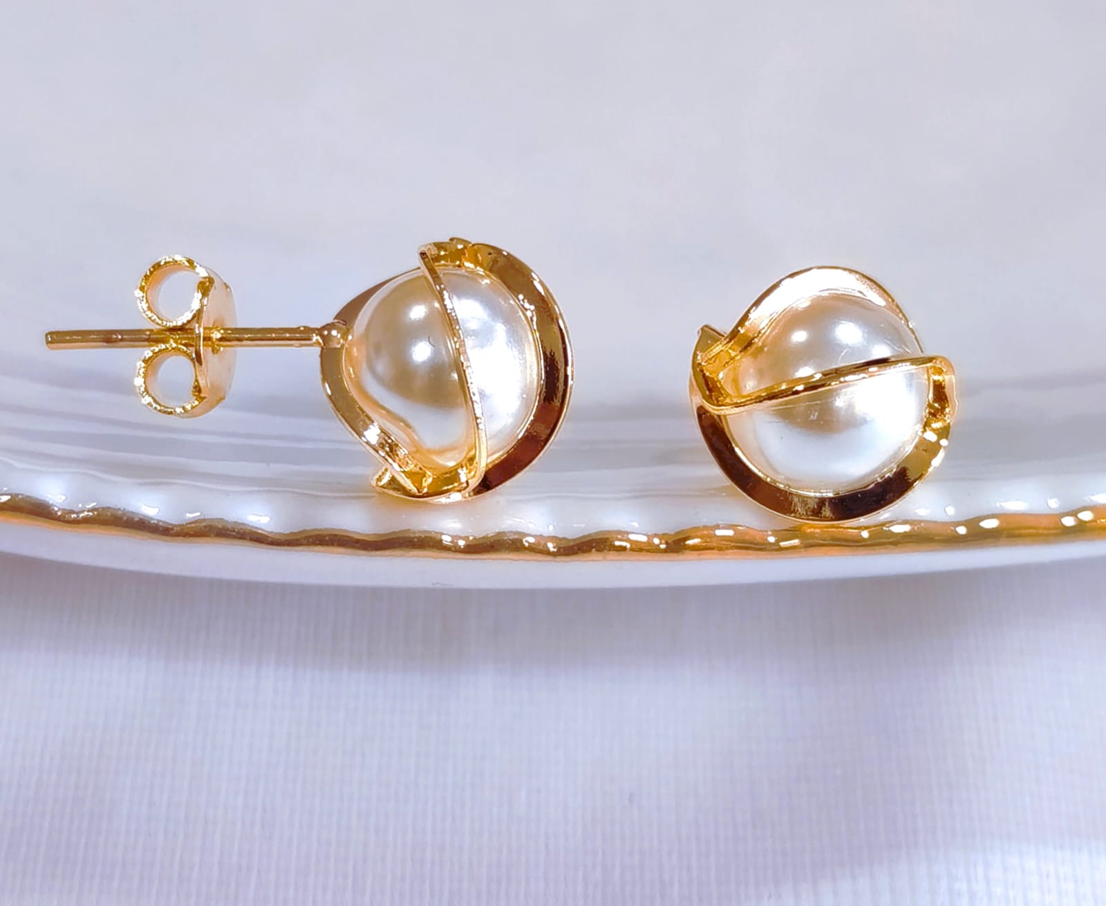 BV 1035 Brinco de Pérola (8mm) com Fio Dourado Yellow Semijóias c/ Banho de Ouro 18K