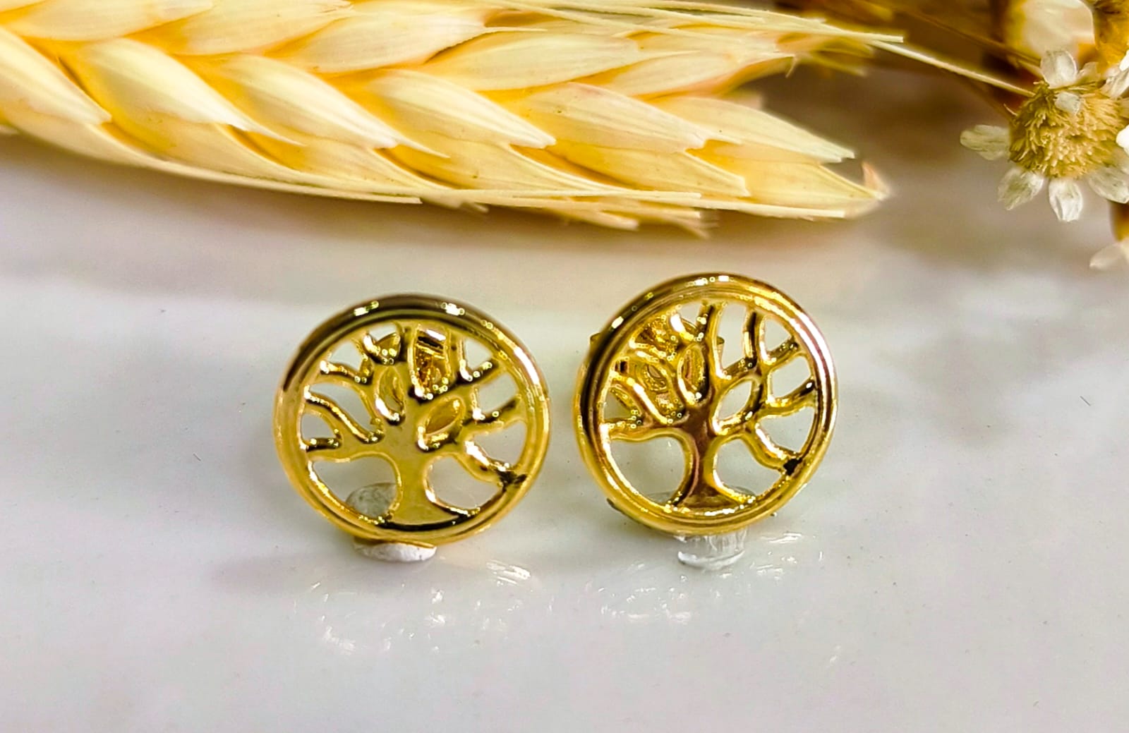 BV 3912 Brinco Redondo Arvore da Vida(1cm) Yellow Semijóias c/ Banho de Ouro 18K.