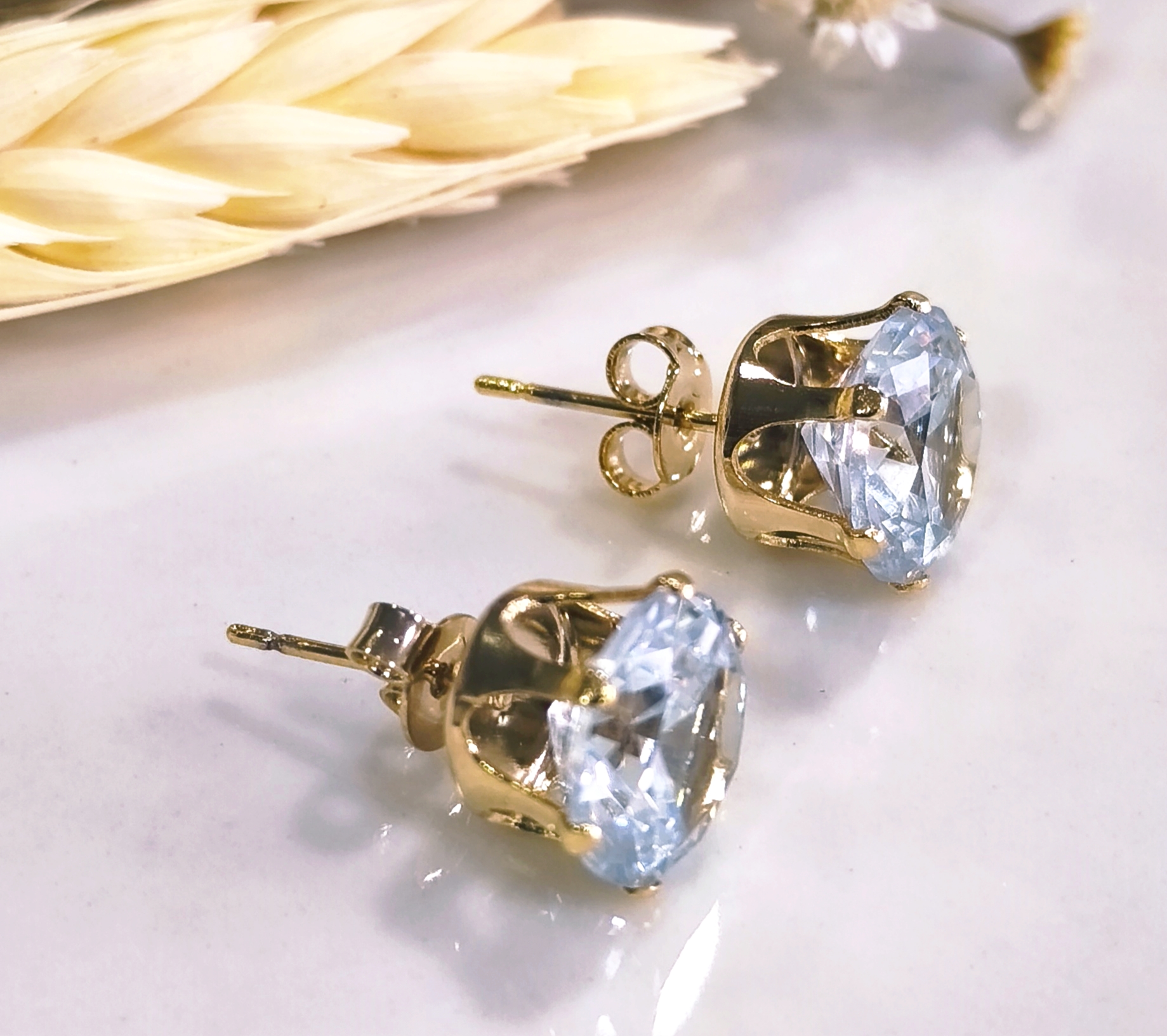 BV 4018 Brinco Solitário Zircônia Redonda Cristal (1cm) Yellow com Banho de Ouro 18K .