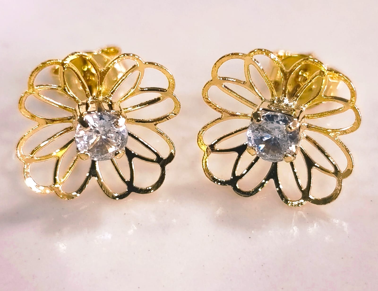 BV 4217 Brinco Flor Vazada (12mm) Yellow Semijóias c/ Banho de Ouro 18k.