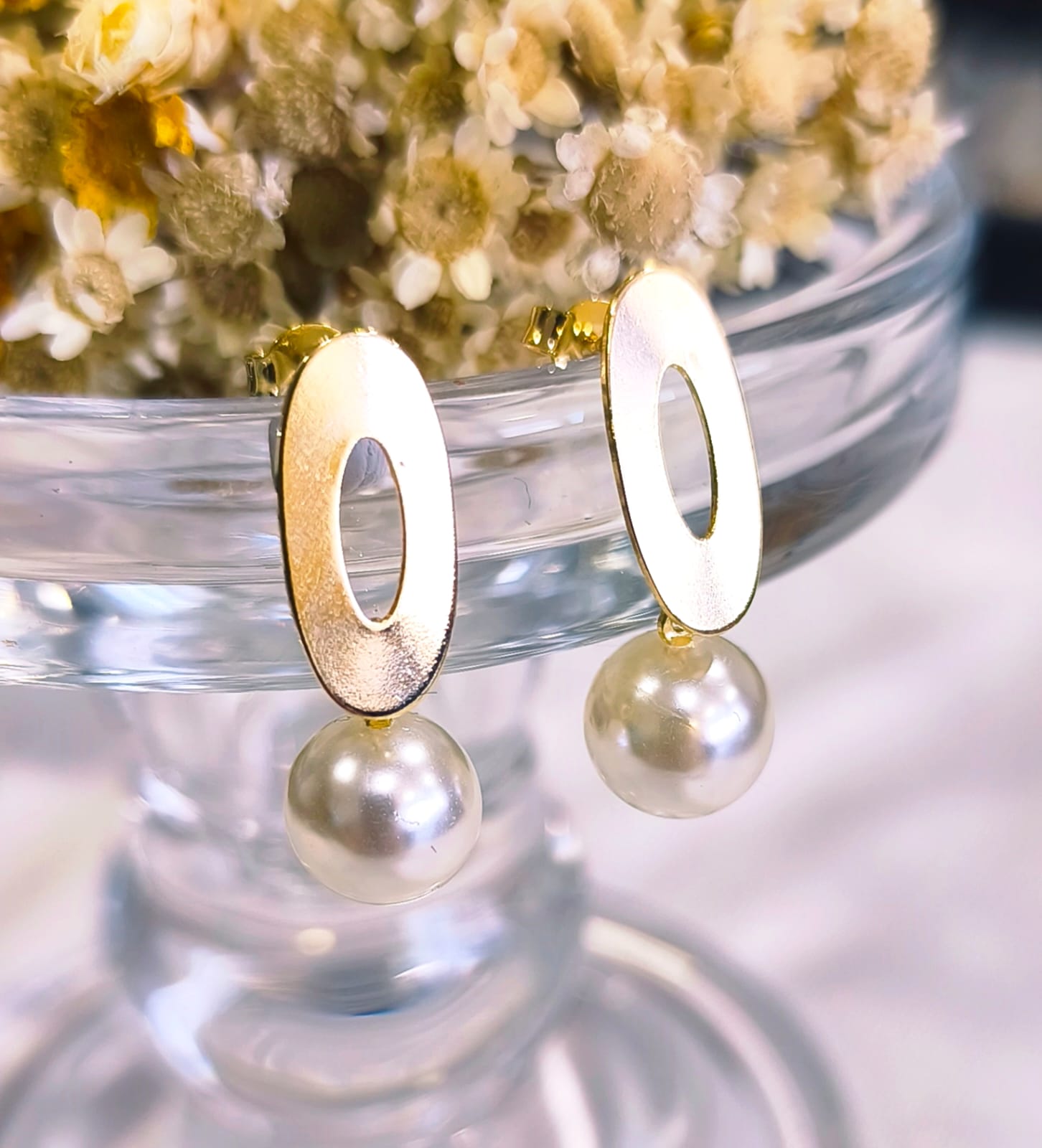 BV 4254 Brinco Base Oval Lisa(1,5cm) c/ Pérola Pendurada (10mm) Yellow Semijóias c/ Banho de Ouro 18K.