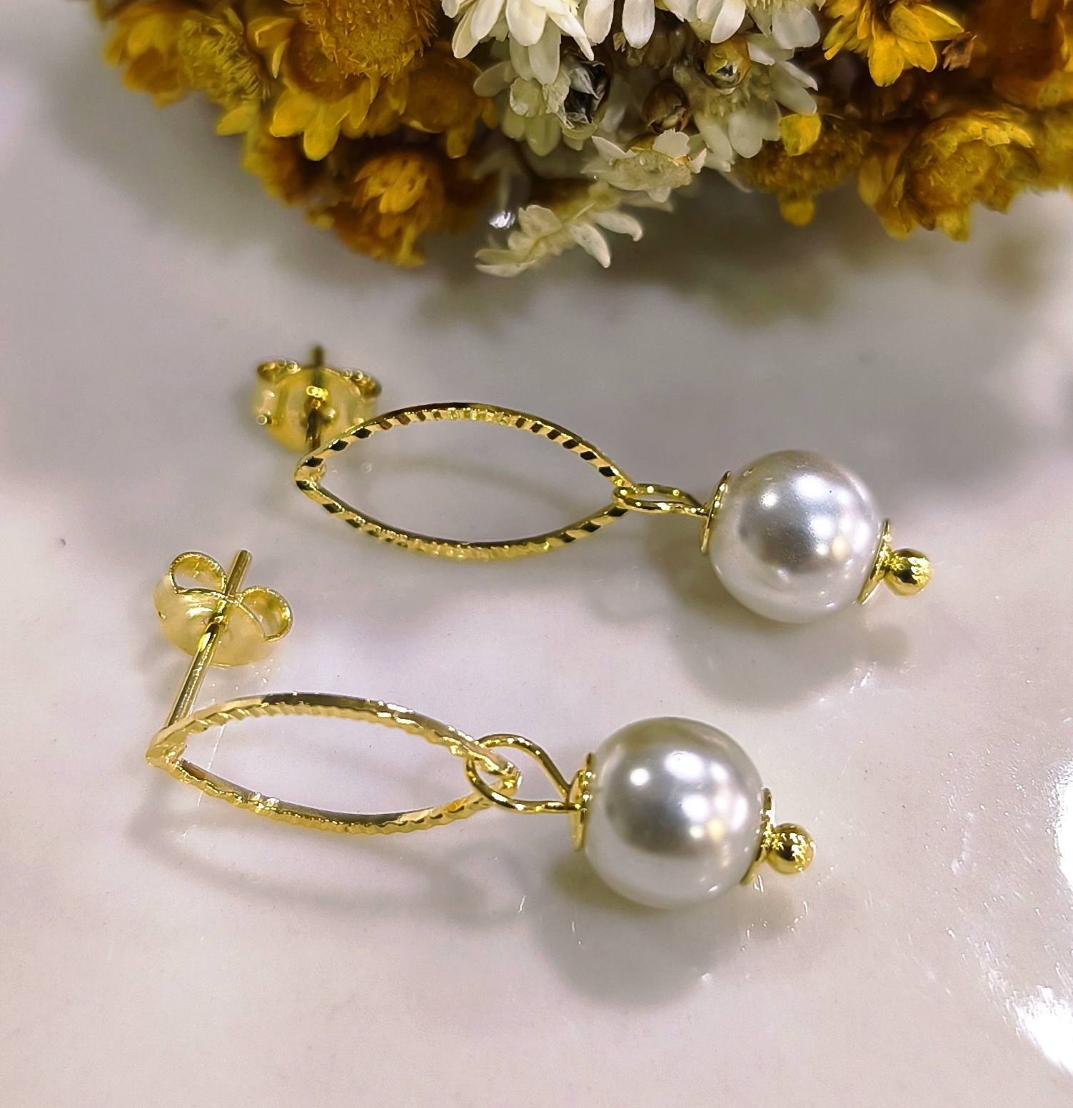 BV 4255 Brinco Losango Vazado Diamantado c/ Pérola 8mm Yellow Semi Jóias c/ Banho de Ouro 18K.