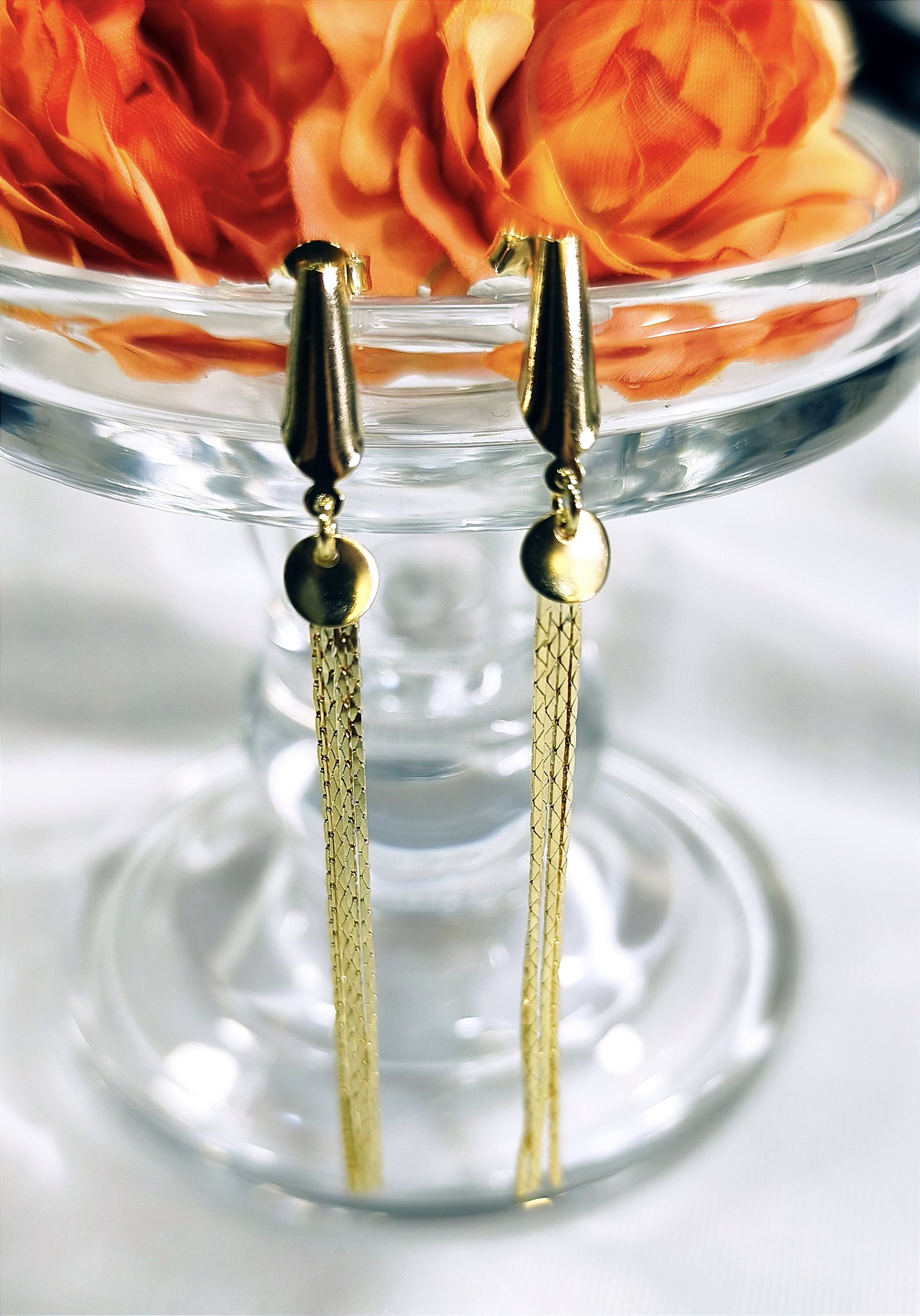BV 4256 Brinco Franja (6cm)Yellow Semi Jóias c/ Banho de Ouro.