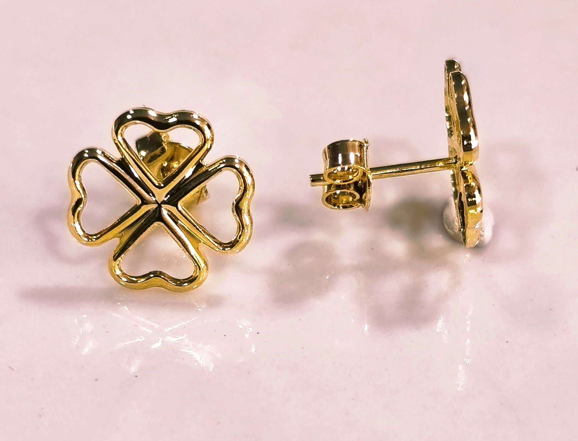 BV 4257 Brinco Trevo 4 Folhas Vazado Liso Yellow Semijóias c/ Banho de Ouro 18k.