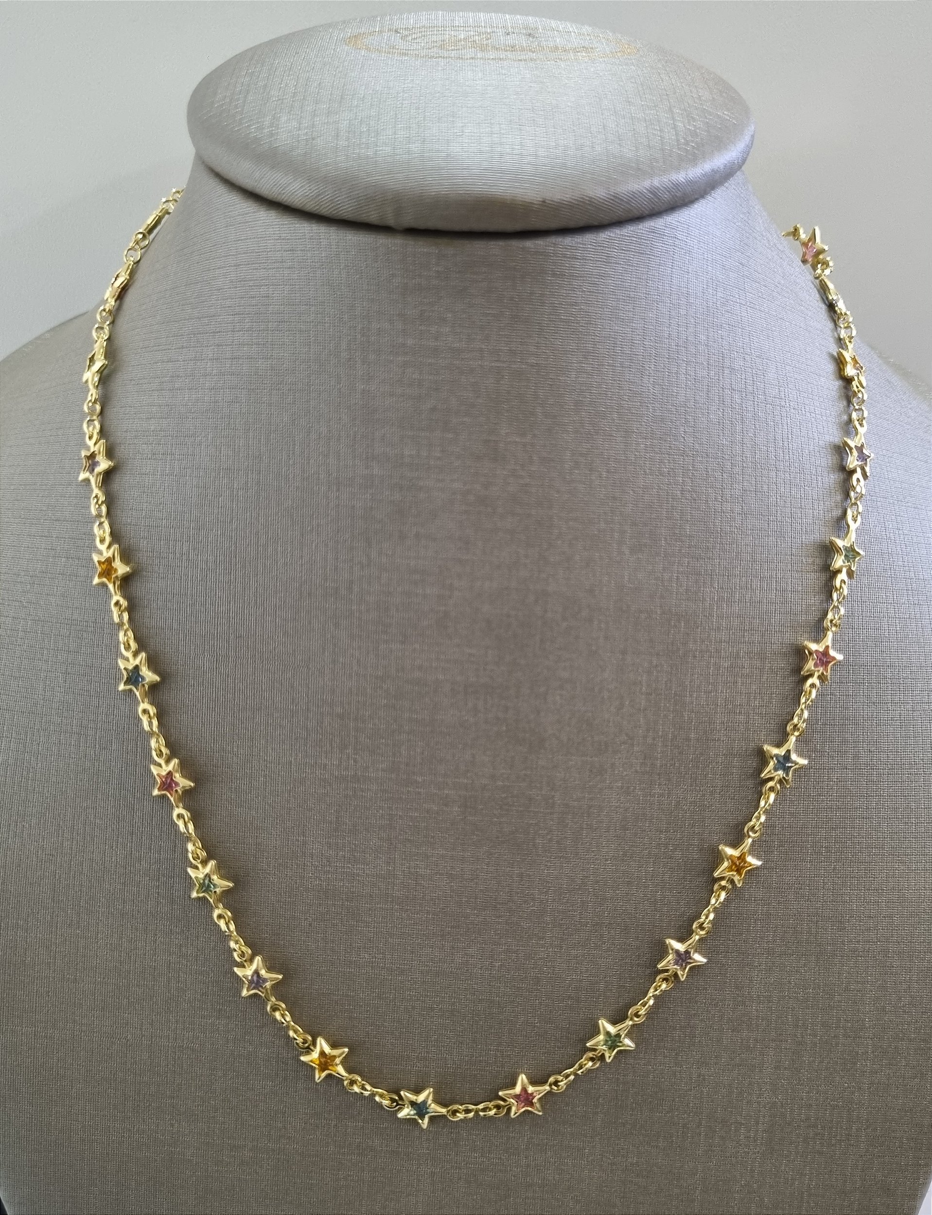 CE 0110 Corrente Estrela Cristais Colorido BRUNA Semijoias Com Banho De Ouro 18K Antialérgico e Níquel FREE.